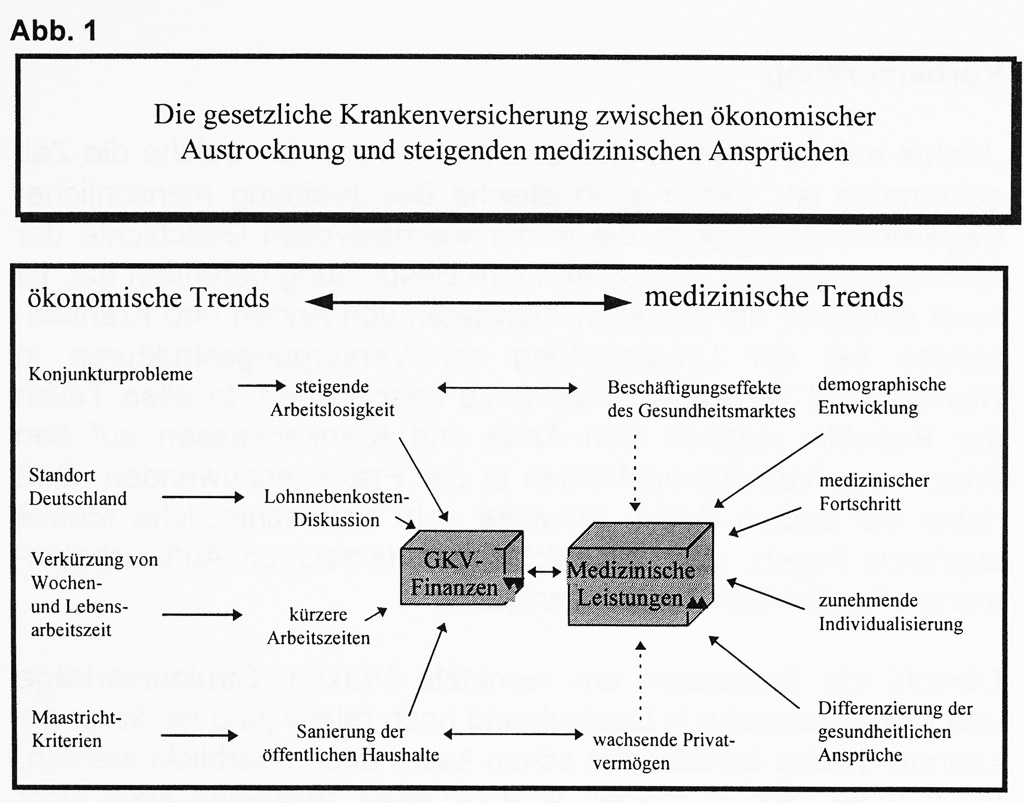 Abb. 1: Die gesetzliche Krankenversicherung zwischen ökonomischer Austrocknung und steigenden medizinischen Ansprüchen